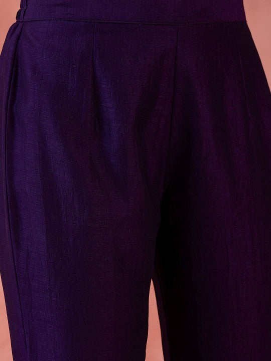 Floral Embroidered V-Neck A-Line Kurta With Trousers & Dupatta